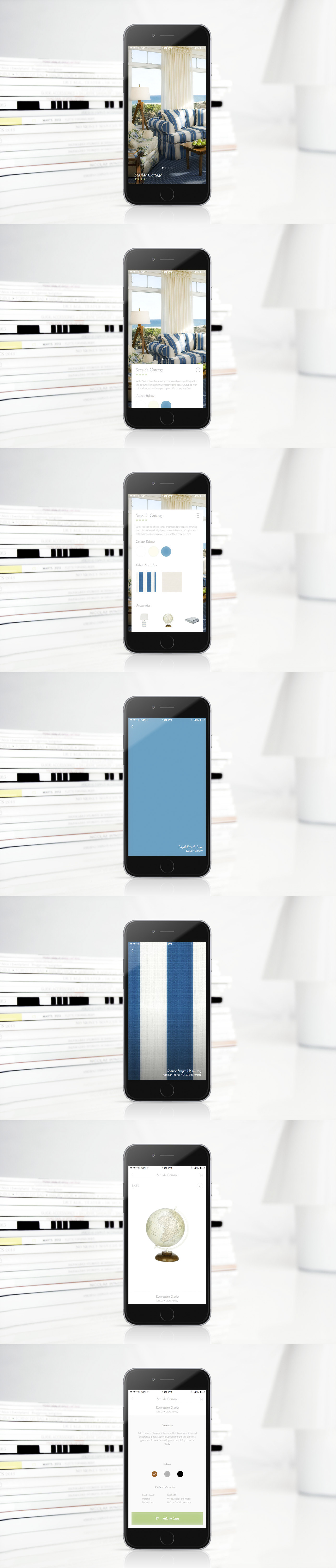 A simple concept I came up with to allow people to view swatches, explore colour schemes and decorating themes and buy items associated with these themes